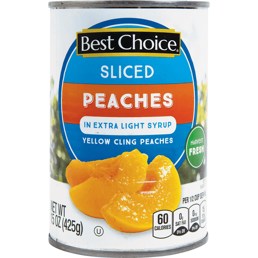 - The manufacturer of Sliced Yellow Cling Peaches in Extra Light Syrup, Peaches is Best Choice.