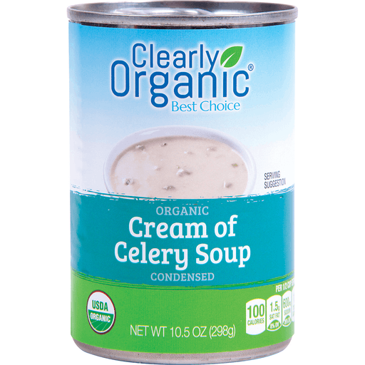 - The manufacturer of Organic Cream of Celery Soup Condensed is Clearly.