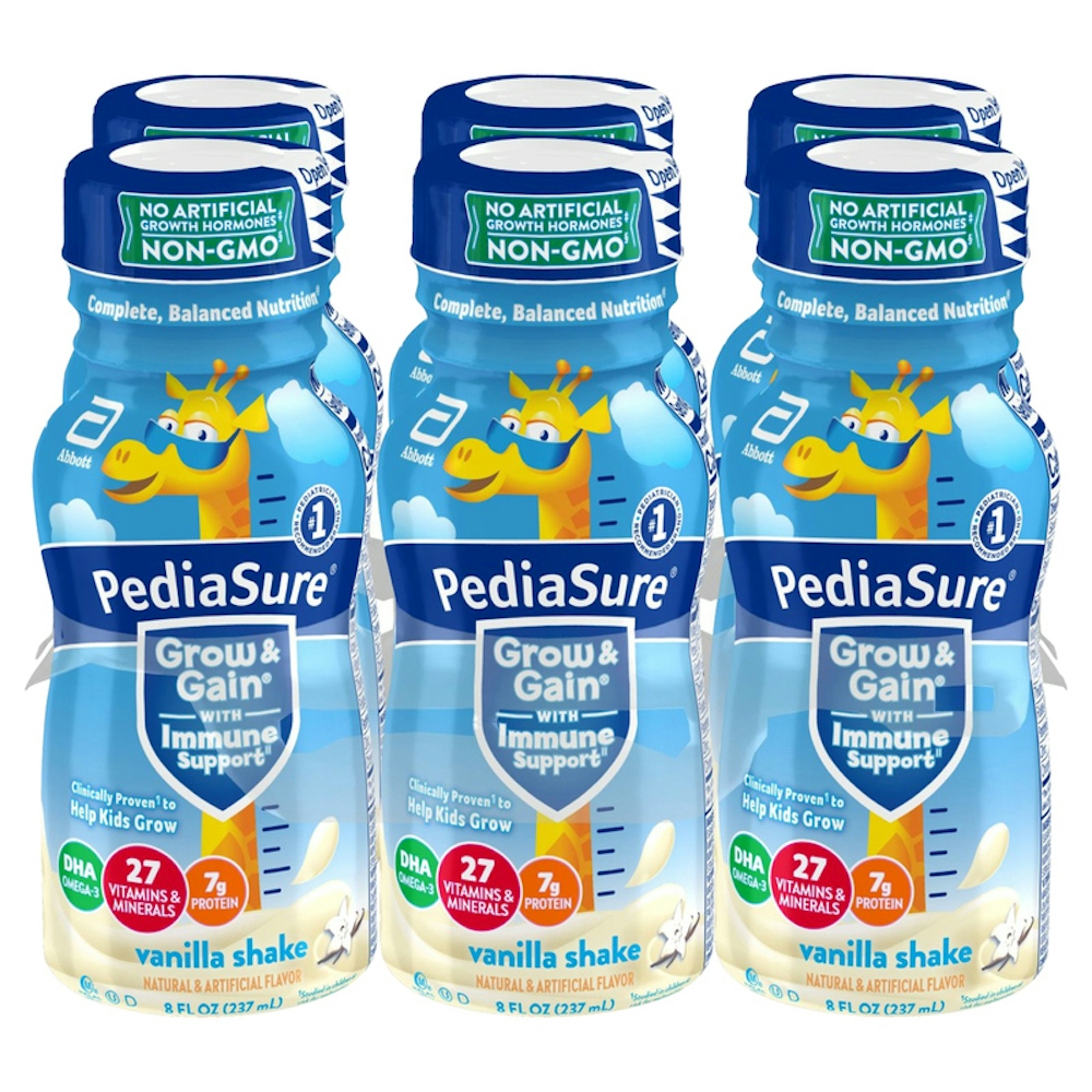PediaSure Grow & Gain with Immune Support kids nutritional shakes are clinically proven to help kids grow. Each shake has 7 key nutrients for immune support, 27 essential vitamins and minerals, 7g of protein to help build muscles, and 32mg of DHA omega-3.