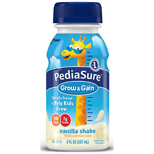 PediaSure nutrition shakes for kids are clinically proven (Studied in children at risk for malnutrition. In children ages 3-4 at nutritional risk (5th-25th weight-for-height percentiles), when given 2 servings per day and dietary counseling) to help kids grow. We're the No. 1 pediatrician recommended brand. Each shake has 7g of protein to help build muscles, 32mg of DHA omega-3 for brain & eye development, antioxidants (vitamins C & E and selenium) for immune support, and 25 essential vitamins & minerals.