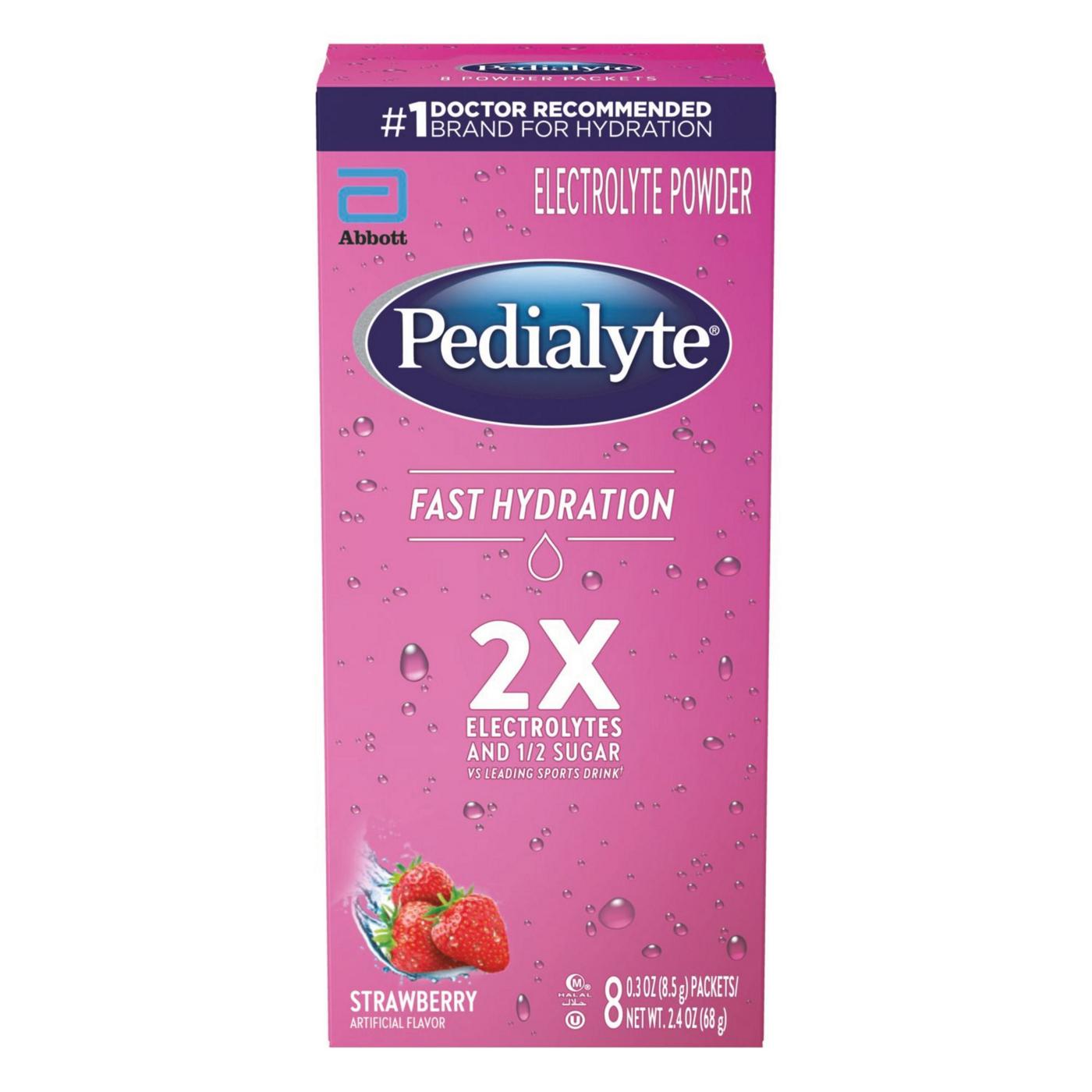 Pedialyte Fast Hydration electrolyte powder is designed for fast, effective rehydration. It has 2x the electrolytes and ½ the sugar of the leading sports drink. It’s also designed to replace fluids and electrolytes more effectively than common beverages, including water, sports drinks, juice, and soda. Enjoy great-tasting flavors from Pedialyte, the #1 doctor-recommended brand for hydration in the US; used by doctors and hospitals for over 50 years.