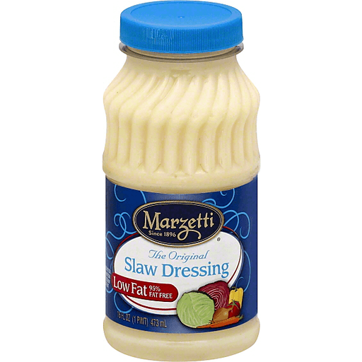 The original. 95% fat free. Since 1896. See nutrition information for sodium content. Marzetti Slaw Dressing has been pleasing generations of consumers with its tangy flavor and convenience. It makes more than just great coleslaw. Use instead of mayonnaise to make a variety of great tasting products, including potato salad, macaroni salad, deviled eggs, and many other exciting recipes.
