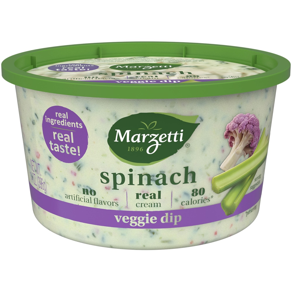 Veggie Dip, Spinach!. Made with real cream. Questions or comments? 1-800-999-1835. www.marzetti.com.