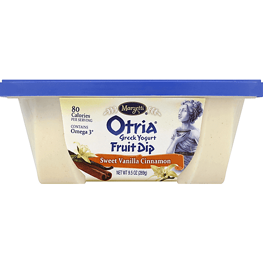 Marzetti® otria® greek yogurt fruit dip sweet vanilla cinnamon. 80 calories per serving. Contains omega 3*.