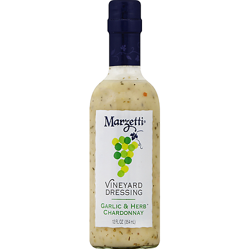 Marzetti® Vineyard Dressing Garlic & Herb Chardonnay. 12 fl oz (354 ml). Inspired by the vine for perfect salad pairings, earthy oregano, rosemary, basil and thyme are paired for a fresh, clean crispness. It's sure to be the toast of your table. Questions or Comments Call: 1-800-999-1835. www.marzetti.com. ©T. Marzetti Company.