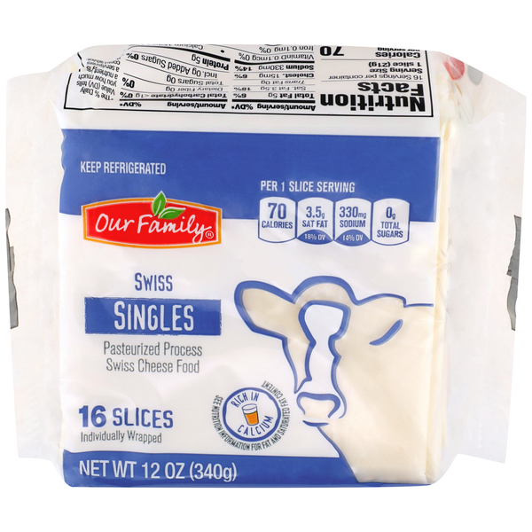 - The manufacturer of Swiss Pasteurized Process Cheese Food Singles, Swiss is Our Family.