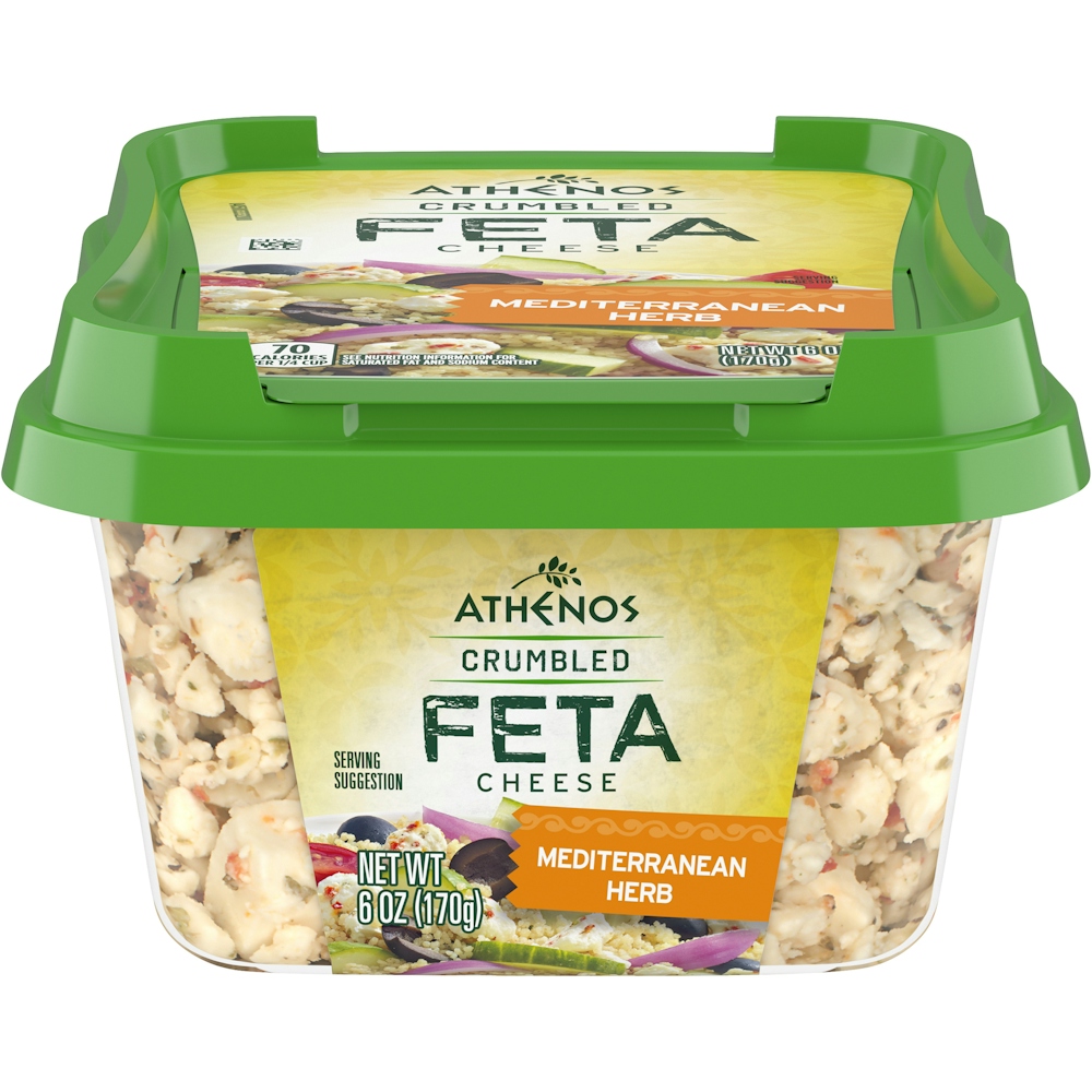 - The product category for Athenos, Crumbled Feta Cheese, Mediterranean Herb, Mediterranean Herb is Cheese.