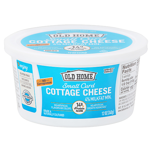 - The manufacturer of 4% Small Curd Cottage Cheese is Old Home.