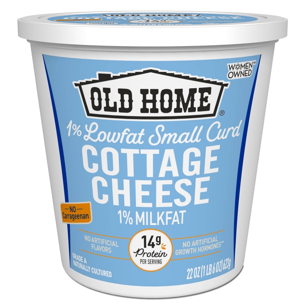 - The manufacturer of 1% Lowfat Small Curd Cottage Cheese is Old Home.