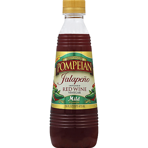 Quality since 1906. New! Try new jalapeno infused red wine vinegar when you want to add a kick to salads or marinades and to liven up chicken, fish or beef. Naturally gluten free. Non-allergenic. For more information and recipes, visit www.pompeian.com. For questions or comments, call 1-800-Pompeian (1-800-766-7342). 5% acidity. Packed in the USA.