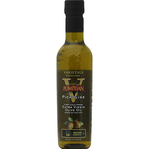 First cold press. Acidity less than 0.5%. Quality since 1904. 100% Picholine olives. Pour it on. Visit www.TreeToBottle.com to learn more about your bottle of Pompeian Varietals Collection. This special extra virgin olive oil celebrates the unique taste qualities of the Picholine Olive Varietal. It is a medium bodied extra virgin olive oil with green fruitiness, hints of herbs and a pleasing balance of bitterness. Some cloudiness or natural sedimentation may occur. Naturally gluten free and non-allergenic. For more product information and recipes visit www.pompeian.com. Please recycle.