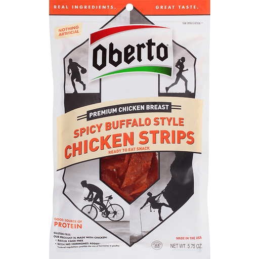 - The manufacturer of Premium Buffalo Style Chicken Strips, Spicy is Oberto.