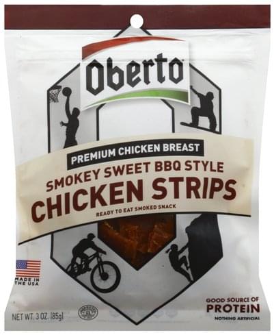 - The manufacturer of Smokey Sweet BBQ Style Chicken Strips is Oberto.