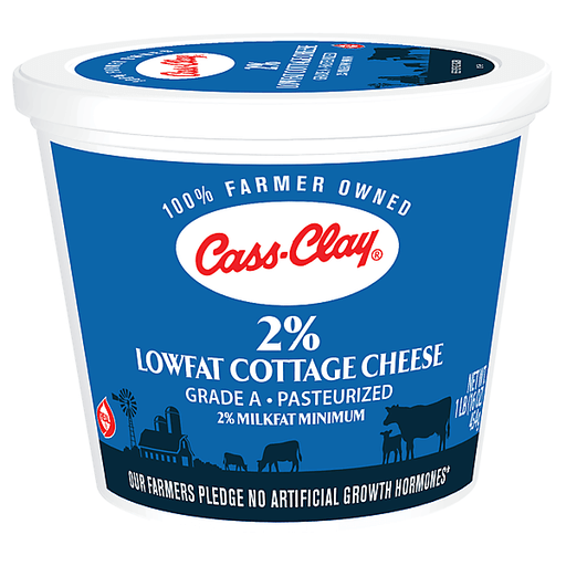 - The manufacturer of 2% Lowfat Cottage Cheese is Cass Clay.
