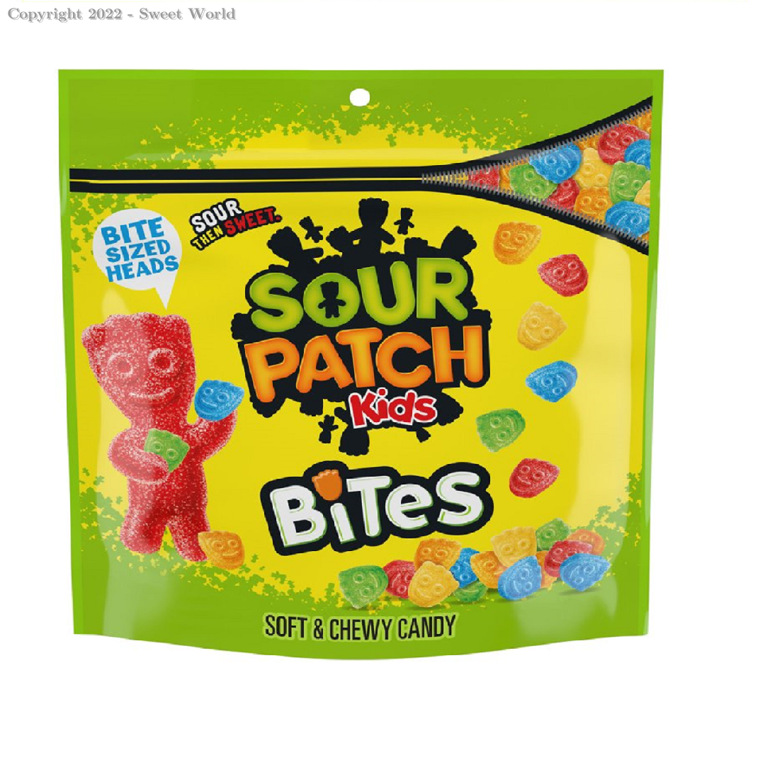 SOUR PATCH KIDS Bites Original Soft & Chewy Candy is bite-sized chewy candy that packs mouth-puckering fruit flavor into a mini ultra-munchable treat. A fat free food this sour candy is the perfect sweet end to your day. Keep this candy on hand for a quick sour treat or as party favors for holidays or birthdays. Share this bagged candy or stash it in desk drawers lockers or backpacks for sour candies on-the-go.