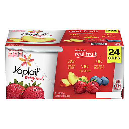 Yoplait, Original Low Fat Yogurt, Strawberry, Mountain Blueberry and Harvest Peach, Strawberry,
