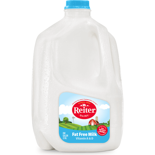 Reiter Dairy Fat Free Milk is a wholesome choice with a refreshing taste and none of the fat for your daily enjoyment. At 90 calories per serving, this skim dairy milk has 8 grams of protein, vitamins A and D, and 25% of the recommended daily value for calcium. Reiter Dairy Fat Free Milk tastes great with breakfast or as part of your favorite recipes. This gallon of milk is ideal for families. At Reiter Dairy, we’ve been providing families with wholesome, delicious dairy products since 1933. It’s our passion, our purpose, and nothing makes our farm families prouder than nourishing yours.