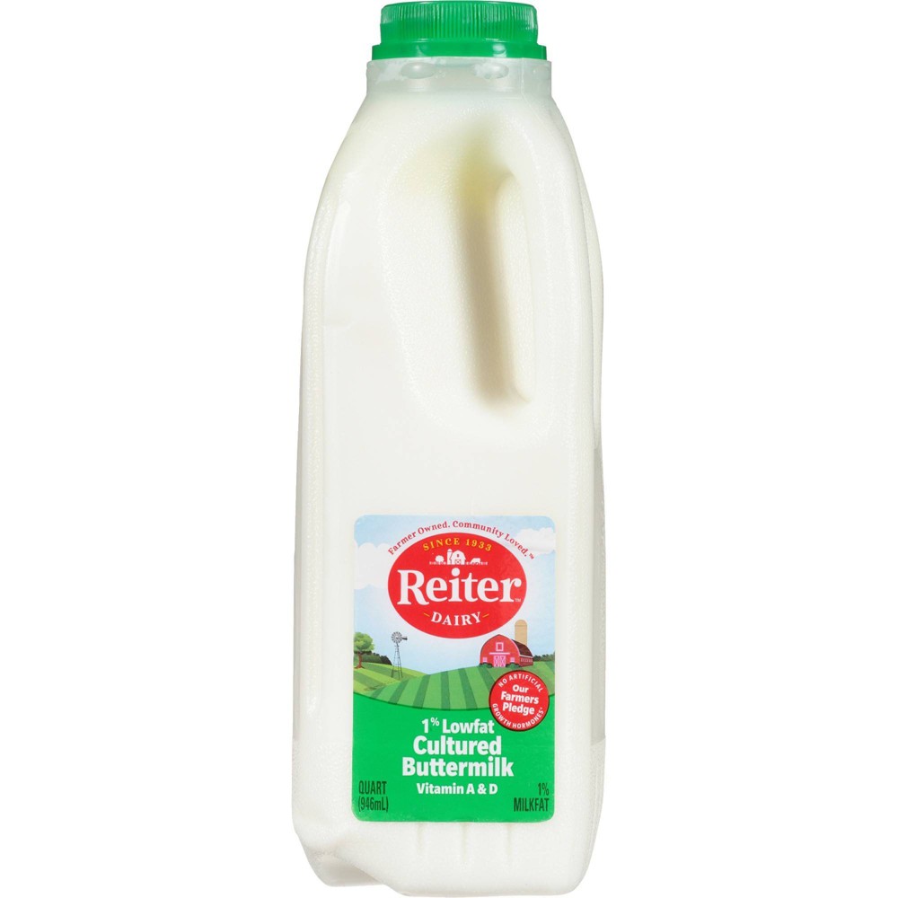 Reiter Dairy 1% Lowfat Cultured Buttermilk is the perfect low fat buttermilk for elevating your baked goods and favorite recipes. Try baking with this quart container of lowfat cultured buttermilk to make your biscuits, buttermilk pancakes, cornbread or cakes extra moist and fluffy, or use it to make homemade buttermilk bread. Reach for Reiter Dairy 1% Lowfat Cultured Buttermilk to make your favorite homemade buttermilk ranch dressing, or enjoy it on its own. This 1% lowfat cultured buttermilk is a great lowfat buttermilk substitute to lighten up recipes that call for buttermilk products.