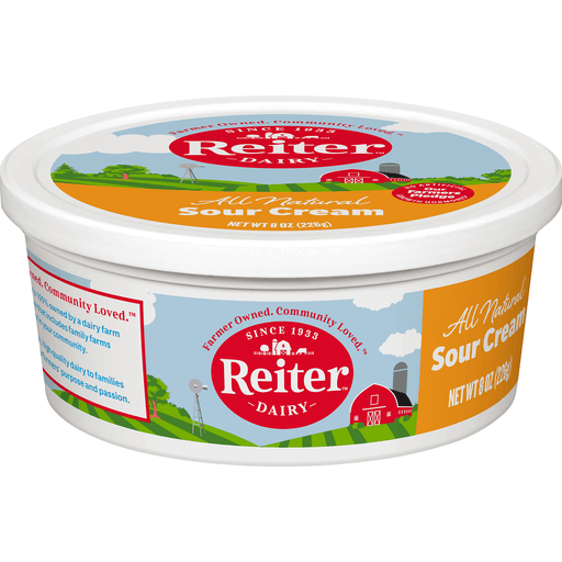 Reiter Dairy All Natural Sour Cream is deliciously rich, creamy, and full of flavor to help you prepare dips, sauces, toppings, and great-tasting recipes. Made with cultured milk and cream and no artificial flavors or preservatives, this versatile sour cream offers the right consistency for adding or mixing into sweet and savory baked goods, soups, potatoes, tacos and party snacks. Reiter dairy sour cream comes in a fridge-friendly tub that allows you to serve it as a dip directly from the container. At Reiter Dairy, we’ve been providing local families with wholesome, delicious dairy products since 1933. It’s our passion, our purpose, and nothing makes our farm families prouder than nourishing yours.