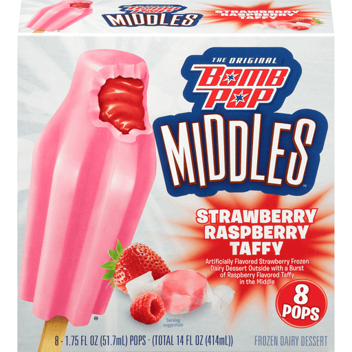 - The manufacturer of Strawberry Raspberry Taffy Flavored Strawberry Frozen Dairy Dessert Outside with a Burst of is Bomb Pop.