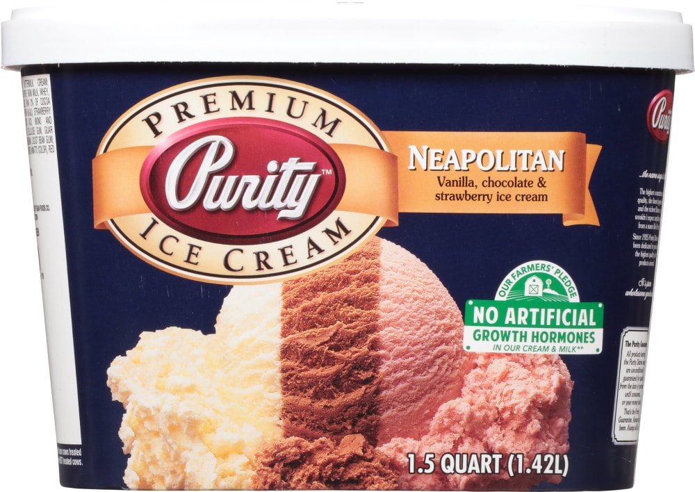 - The manufacturer of Premium Ice Cream, Neapolitan is Purity.