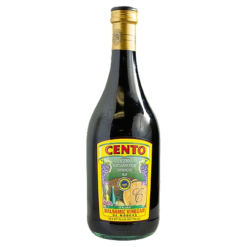 Cento Balsamic Vinegar of Modena is made from the finest hand-selected Italian grapes and produced using the same unique, traditional process that has been used in the Modena region of Italy for well over four centuries. With a traditional and tart average grape must, Cento Balsamic Vinegar of Modena is perfect for salads and everyday use.