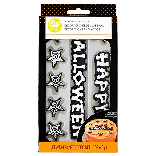 Icing Decorations-Happy Halloween Words & Webs Large icing decorations make any cake more fun and festive! This 4.125x7.125x.75 inch package contains nine icing decorations. Imported.