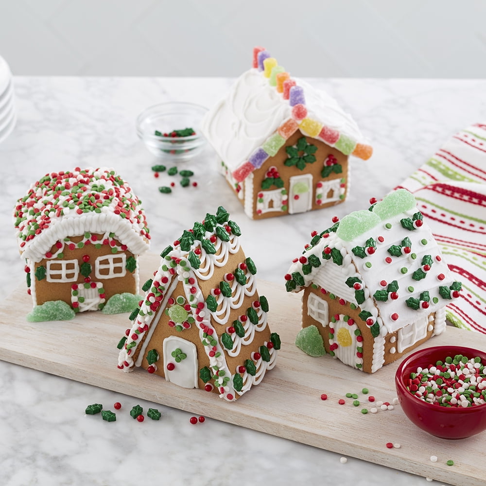 Gingerbread: Enriched Wheat Flour (Wheat Flour, Niacin, Iron, Fungal-Amylase, Ascorbic Acid, Thiamine Mononitrate, Riboflavin, Folic Acid), Sugar, Vegetable Shortening (Palm Oil, Modified Palm Oil), Molasses, Water, Baking Soda, Salt, Spices (Cinnamon, Ginger, Allspice, Cloves). Ready-To-Use White Icing: Sugar, Water, Vegetable Shortening (Palm Oil, Modified Palm Oil, Mono-And Diglycerides, Polysorbate 60), Corn Syrup, Corn Starch, Modified Corn Starch, Salt, Artificial Flavor, Titanium Dioxide (Color), Potassium Sorbate (Preservative), Citric Acid. Mini Sugared Gum Drops: Corn Syrup, Sugar, Modified Corn Starch, Artificial Flavors, Citric Acid, FD&C Yellow #5, FD&C Red #40, FD&C Yellow #6, FD&C Yellow #6, FD&C Red #3, FD&C Blue #1, FD&C Blue #2. Holly Mix: Dextrose, Corn Starch, Sugar, Dextrin, Magnesium Stearate, Gum Arabic,Artificial Flavor, Confectioner'S Glaze, Carnauba Wax, FD&C Yellow #5, FD&C Blue #1, FD&C Red #40. Green Leaves: Corn Syrup, Sugar, Corn Starch, Modified Corn Starch, Natural Mint Flavor, FD&C Yellow #5, FD&C Blue #1. Red/White/Green Candy: Confectioners' Sugar (Sugar, Corn Starch), Rice Flour, Corn Starch, Fractionated Palm Kernel Oil, Cellulose Gum, Soy Lecithin, Artificial Flavor, Polysorbate 60, FD&C Yellow #5, FD&C Yellow #6, FD&C Red #3, FD&C Blue #1, Confectioner'S Glaze.