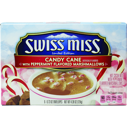 Swiss Miss Candy Cane Hot Cocoa Mix With Peppermint flavoured Marshmallows 124g. A limited edition Candy Cane flavoured Hot Chocolate with peppermint flavoured marshmallows.