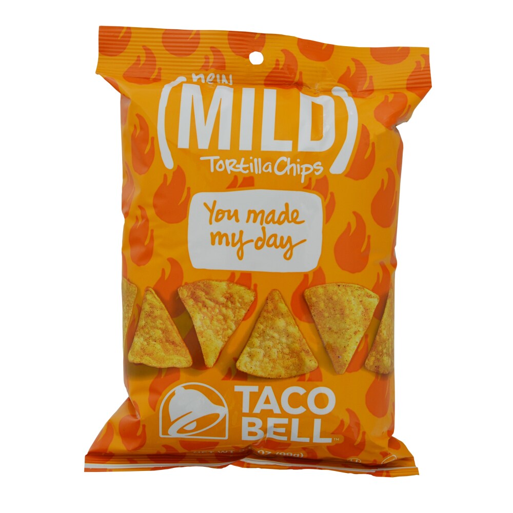 Gluten free. New. I had so much fun! Introducing Taco Bell's new Mild tortilla chips. I'm not the type to brag, but I'm perfectly seasoned with a little kick and a lot of flavor that makes the best crispy, crunchy bite. I'm great for parties, on lunch dates or when you're craving a midnight snack. Product of Mexico.