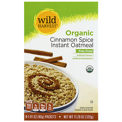 Cinnamon spice instant oatmeal free from artificial flavors or sweeteners. USDA Organic. 8 - 1.41-ounce packets per package.