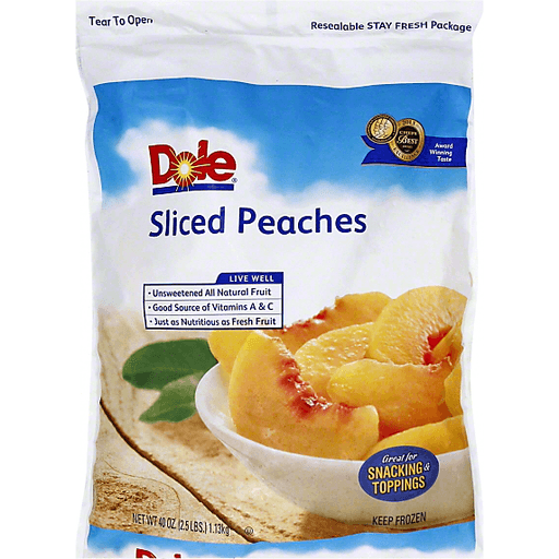 - The manufacturer of Sliced Peaches is Dole.