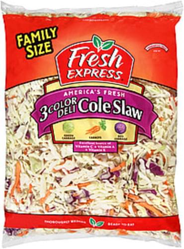 Made with green cabbage, carrots and red cabbage, Fresh Express America's Fresh Three-Color Deli Cole Slaw is an excellent source of Vitamin C, A and K. You can have it as a salad, use it as a side dish, or combine it with a cooked dish.