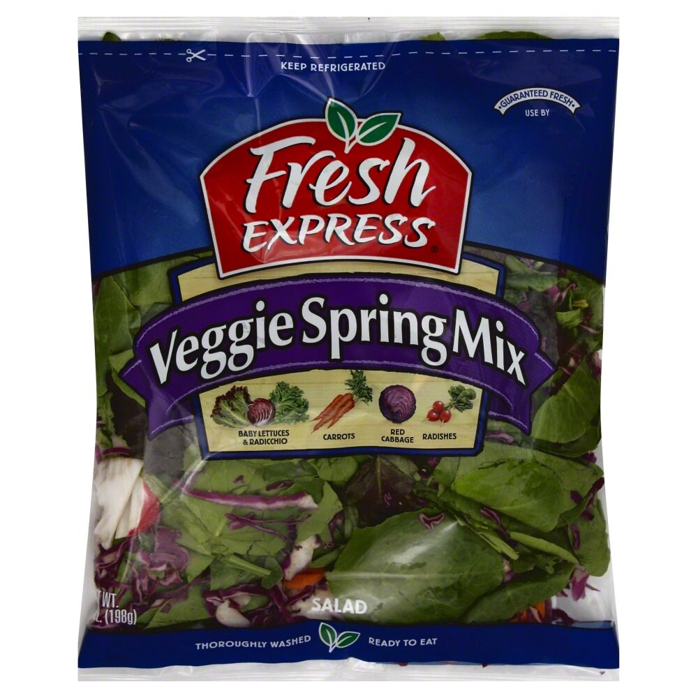 - The manufacturer of Veggie Spring Mix Salad is Fresh Express.