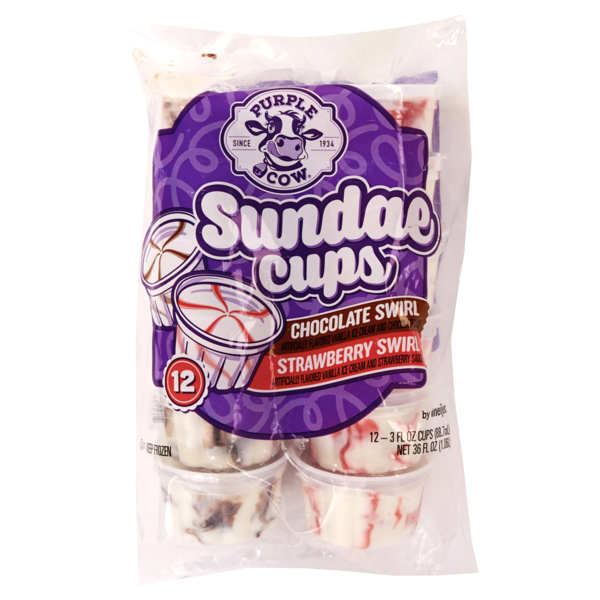 - The manufacturer of Sundae Cups is Purple Cow.