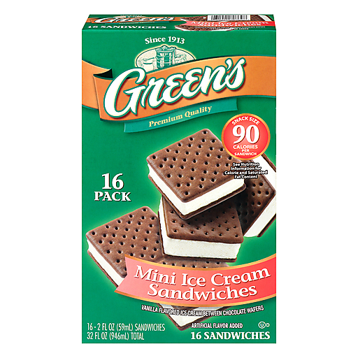 - The manufacturer of Vanilla Flavored Ice Cream Between Chocolate Wafers Mini Ice Cream Sandwiches, Vanilla is Greens.