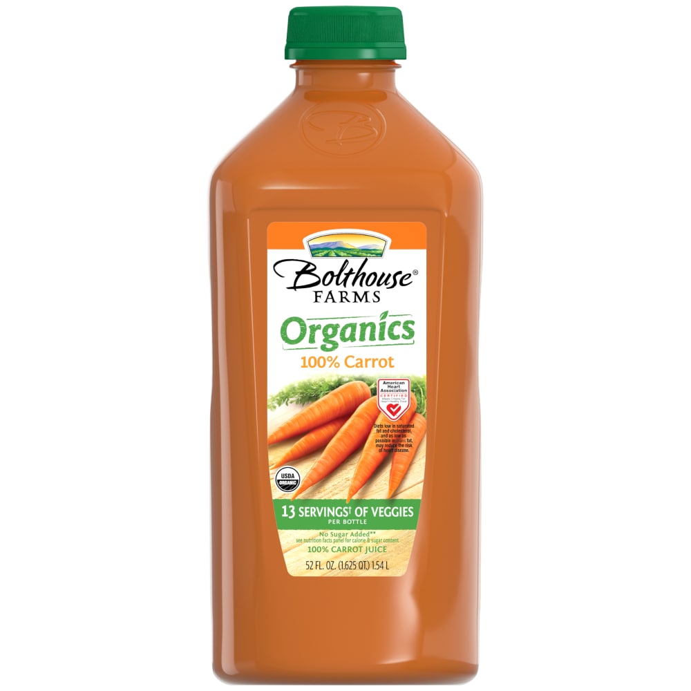 - The product category for Bolthouse Farms, Organics Juice, Carrot, Carrot is Juice.