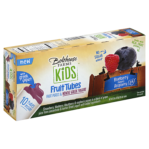 - The product category for Bolthouse Farms, Fruit Tubes with Greek Yogurt, Blueberry Meets Raspberry, Blueberry Meets Raspberry is Yogurt.