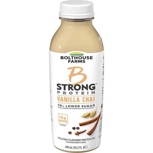 With a hint of creamy vanilla spice plus 16 grams of protein, this shake has 70% lower sugar* — so you can feel good about not getting too much of the sweet stuff. (*Than Leading Refrigerated Protein Drink). With a hint of creamy vanilla spice plus 16 grams of protein, this shake has 70% lower sugar* — so you can feel good about not getting too much of the sweet stuff. (*Than Leading Refrigerated Protein Drink). Bolthouse Farms, founded in 1915 and based in California's San Joaquin Valley, is known for high-quality consumer brands and innovative products. A market share leader in growing and distributing carrots, Bolthouse Farms produces and sells super premium juices, smoothies and cafe beverages under the Bolthouse Farms® brand name. We've promised to use fewer ingredients that people don't want. And more of the ones they do.