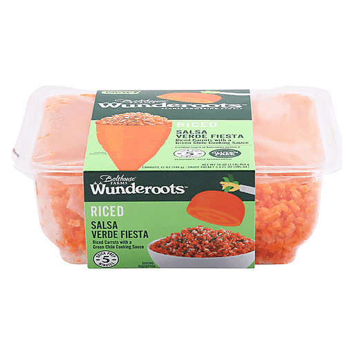Riced carrots with a green chile cooking sauce. Gluten free. Excellent source of antioxidant vitamin A. New! Plants powering people. 5 minutes quick prep. No artificial preservatives, flavors or colors. You've discovered Wunderoots! Grown under the rich, sunny soil of Bolthouse Farms, our undeniably Wunderful carrots have been reimagined as colorful creations you'll crave. Give taco night a fresh veggie upgrade by swapping traditional rice for Wunderoots riced carrots tossed with our salsa verde sauce for a flavor fiesta everyone will root for!