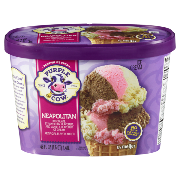 - The manufacturer of Neapolitan Premium Ice Cream is Purple Cow.