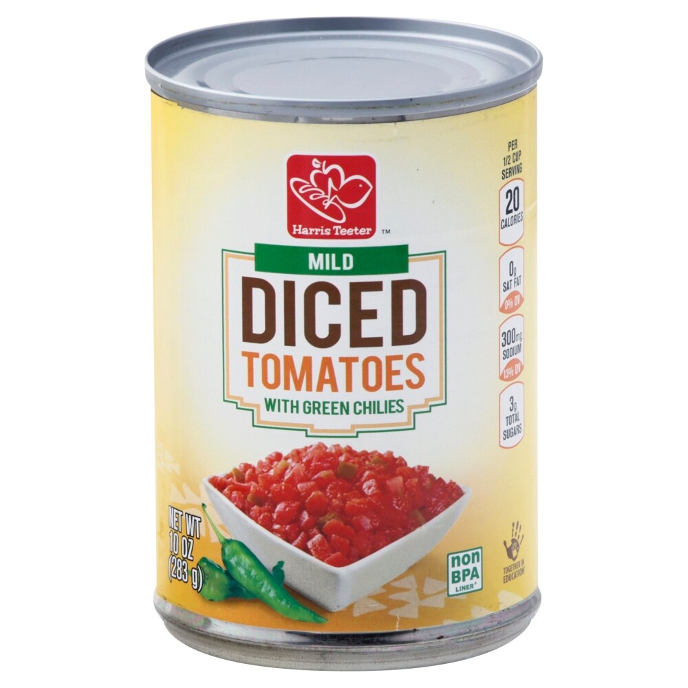 - The manufacturer of Mild Diced Tomatoes with Green Chilies, Mild with Green Chilies is Harris Teeter.