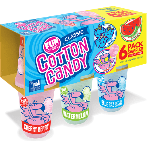 - The manufacturer of 6 Pack Cotton Candy Sampler is Fun Sweets.