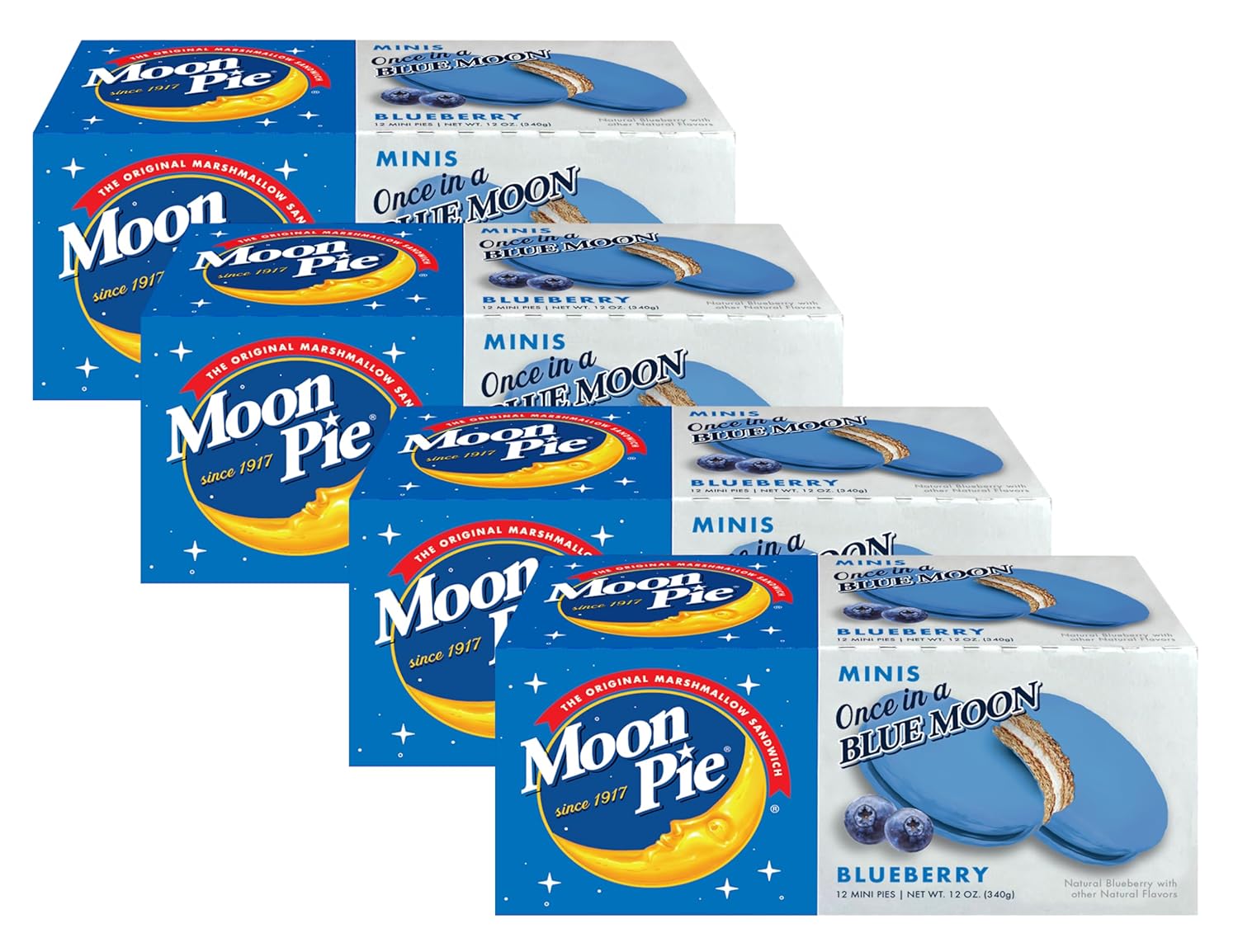 Delicious MoonPie snack is made of two crisp graham crackers sandwiched around a marshmallow center, then covered with a layer of blueberry flavored coating. Out of this world taste while still being made like the good ol' days! Mom approved with no HFCS, no preservatives, and no trans fat! Eat right from the package or warm in microwave for a few seconds for a fabulous, filling dessert! Baked in the USA for over 100 years using the best natural ingredients including real sugar and no artificial colors. Ideal for lunch rooms, snacks, and households that love a quick, filling, and delicious treat!