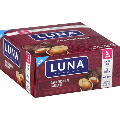 New. 5 g sugar. Gluten free. 7 g protein. Non-GMO. Made with organic dark chocolate & oats. In 1999, we created Luna, the first nutrition bar for women.