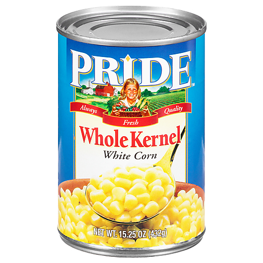 - The manufacturer of Whole Kernel White Corn is Pride.