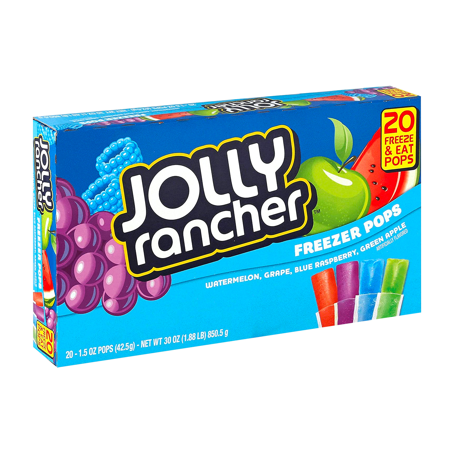 - The manufacturer of Freezer Pops, Watermelon, Grape, Blue Raspberry, Green Apple is Jolly Rancher.