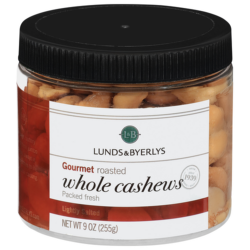 - The manufacturer of Lighly Salted Gourmet Roasted Whole Cashews, Lighly Salted is Lunds & Byerlys.