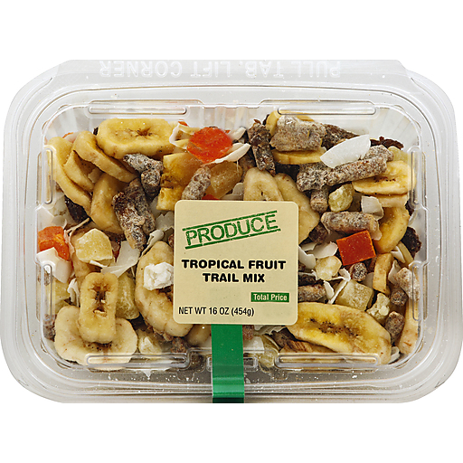 - The UPC barcode for Tropical Fruit Trail Mix is 072488987302.