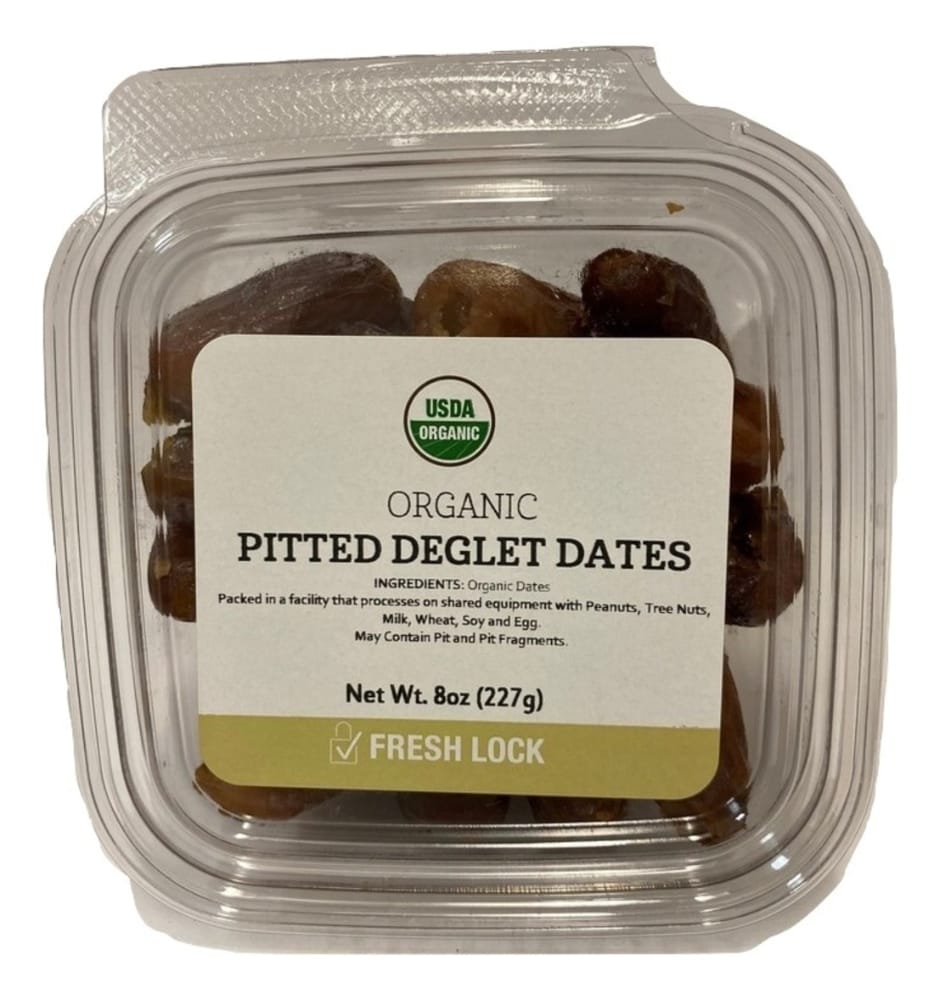 - The country of origin for Organic Pitted Deglet Dates is United States.